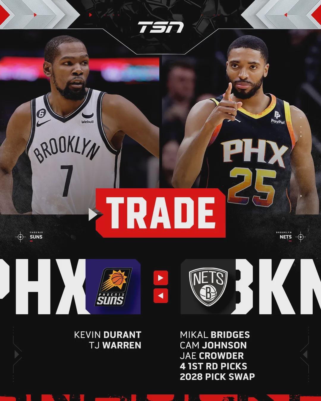 篮网和蔡老板做梦也能笑醒,过去两年休赛期,先后把大桥送到尼克斯,又把卡梅伦-约翰逊送到掘金。篮网相当于用杜兰特换来了小迈克尔-波特,以及10个首轮签、2个首轮互换权和5个次轮签。有了首轮签,才有重建成功的可能。
