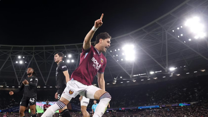 就在道曼帮助枪手战胜埃弗顿一小时后,几英里外的伦敦体育场,西汉姆联的中卫马夫罗帕诺斯一头砸在横梁上弹入网窝,帮助球队逼平了曼城。阿森纳取胜,曼城拼尽全力却只拿到一场感觉“致命”的平局。
